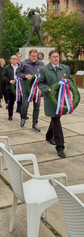 Delegacija in praporščaki na komemoraciji ob Dnevu spomina na mrtve v spominskem parku na Ptuju 30.10.2023.