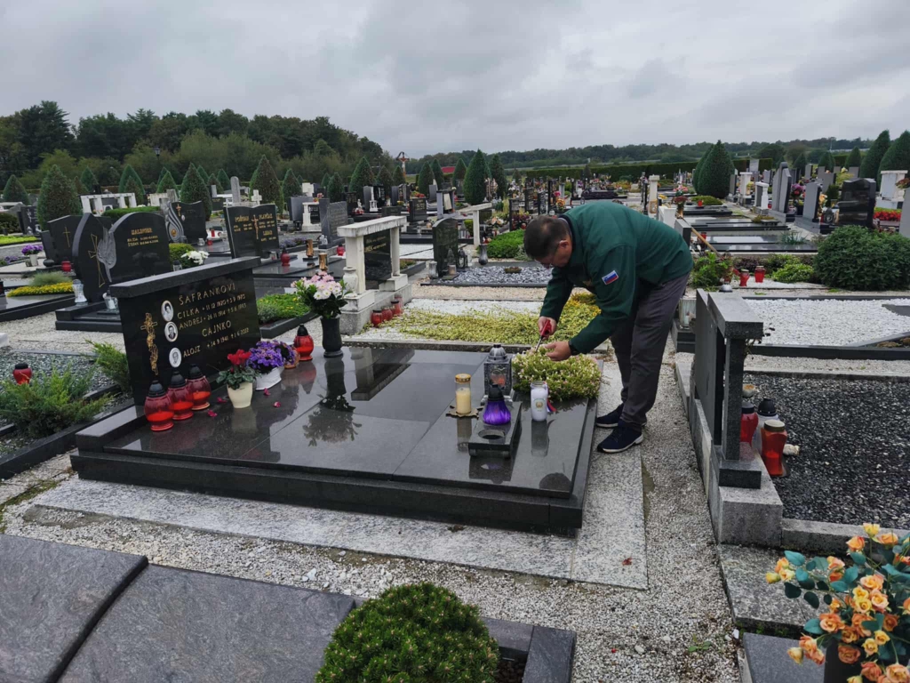 V nadaljevanju smo se sprehodili do pokopališča na Hajdini kjer smo našemu pokojnemu ustanovnemu članu Alojzu Cajnku prižgali svečko.